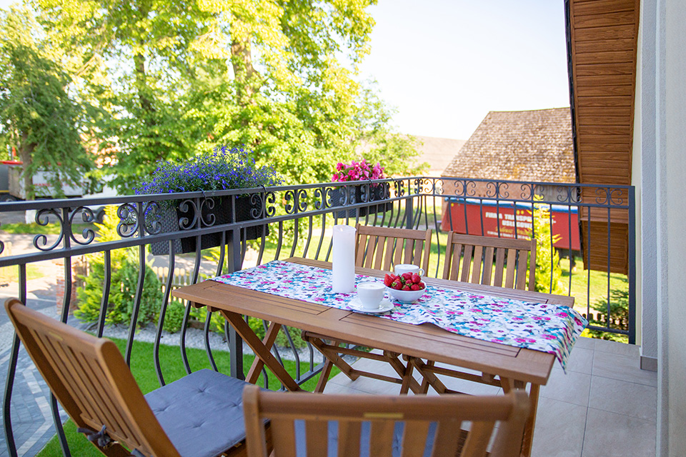 - dwie jasne, przestronne sypialnie z dużym balkonem, gdzie przy stoliku wypijecie poranną kawę