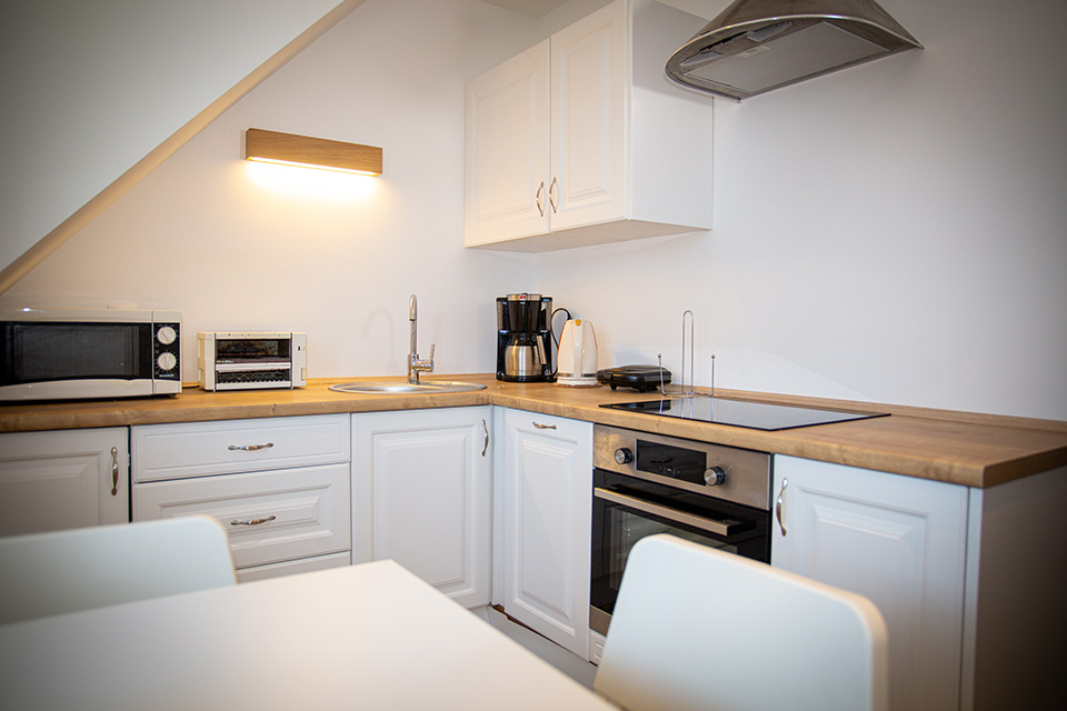 W naszym apartamencie znajdziecie liczne udogodnienia: telewizor z płaskim ekranem w każdym pokoju, zmywarkę do naczyń, kuchenkę mikrofalową, ekspres do kawy, lodówkę oraz piekarnik. Na życzenie Gości udostępniamy również pralkę.